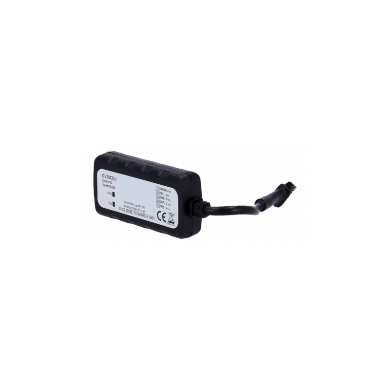 Rastreador GNSS compacto GV30CEU, compatible con LTE Cat 1 y respaldo 2G, tamaño discreto, detección de interferencias, protección IP54, alimentación de 9 a 90 V, BLE 5.4, ideal para aplicaciones de monitoreo de transporte, financiamiento vehicular, recuperación de vehículos robados, alquiler de coches y logística.