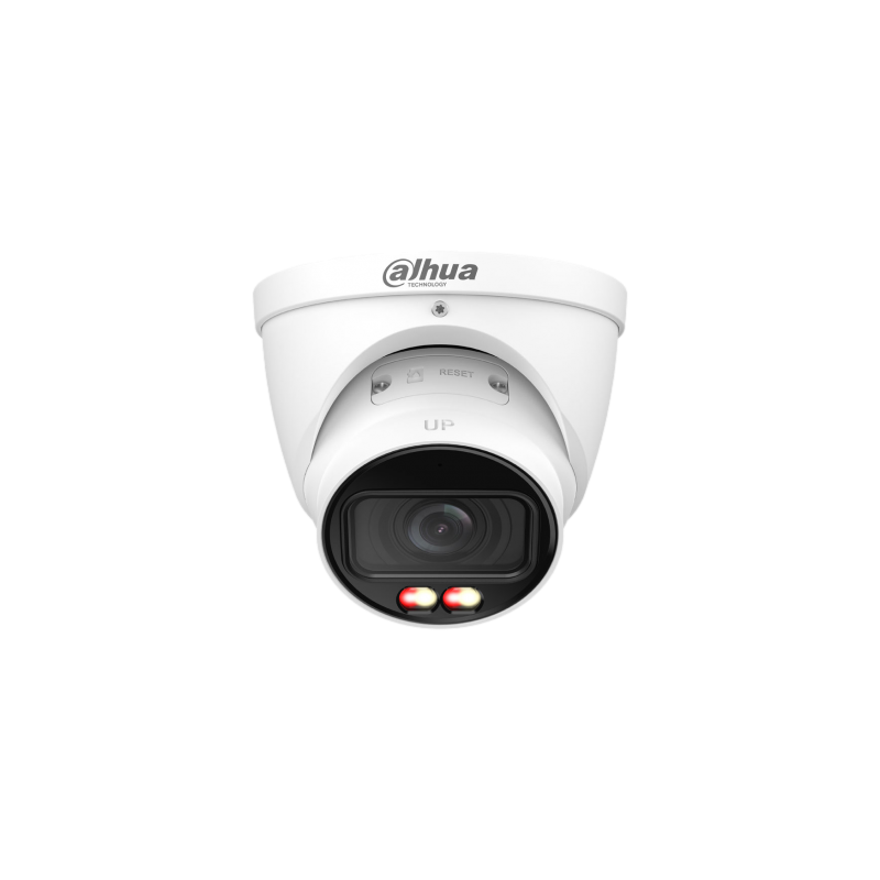 Domo IP Dahua WizMind 5, resolución de 4 megapíxeles a 25 y 30 imágenes por segundo. Compresión eficiente H.265, Smart H.264+ y Smart H.265+. Óptica motorizada de 2,7 a 12 mm, Smart Dual Light con alcance de infrarrojo de 50 metros y luz cálida de 40 metros. Incorpora tecnologías AcuPick, generación de metadatos de vídeo, protección perimetral, detección facial, conteo de personas y mapas de calor. Incluye micrófono integrado y ranura para tarjeta MicroSD de hasta 1 TB. Protegido con IP67 y opciones de alimentación de 12 V CC, PoE+ y ePoE.