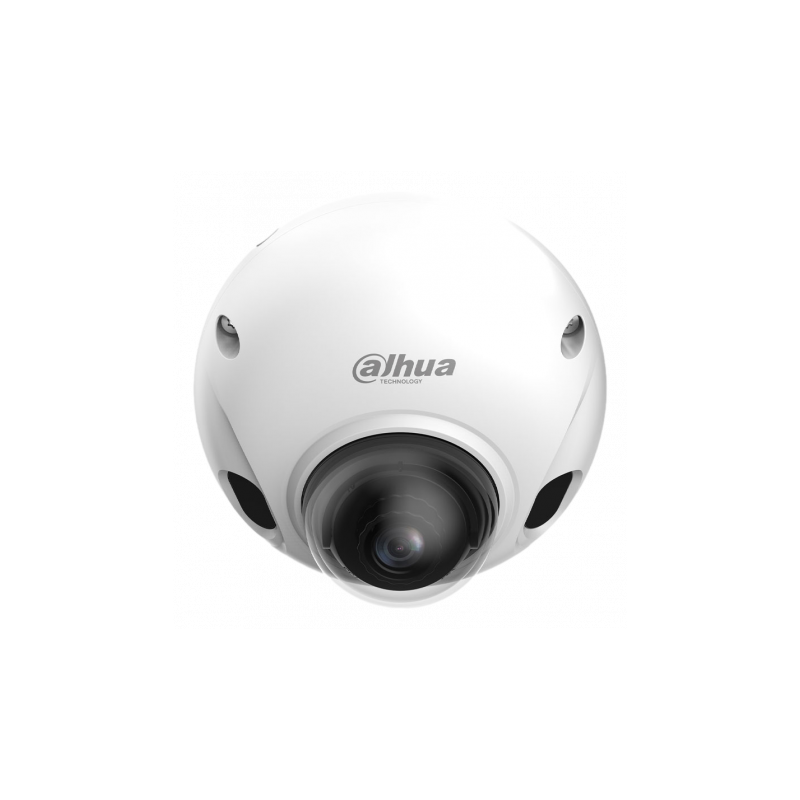 Domo IP móvil de 2MP Dahua, video de alta definición a 25 o 30 imágenes por segundo, ICR, iluminación mínima de 0,002 lux, visión nocturna infrarroja hasta 20 metros, óptica fija de 2,1 mm con campo visual de 125 grados, WDR de 120 dB, reducción de ruido 3D NR, funciones avanzadas como conteo de pasajeros y detección facial basada en inteligencia artificial, micrófono integrado, ranura microSD para almacenamiento de hasta 256 GB, alimentación mediante de 12 V CC y PoE, protección IP67 e IK10.