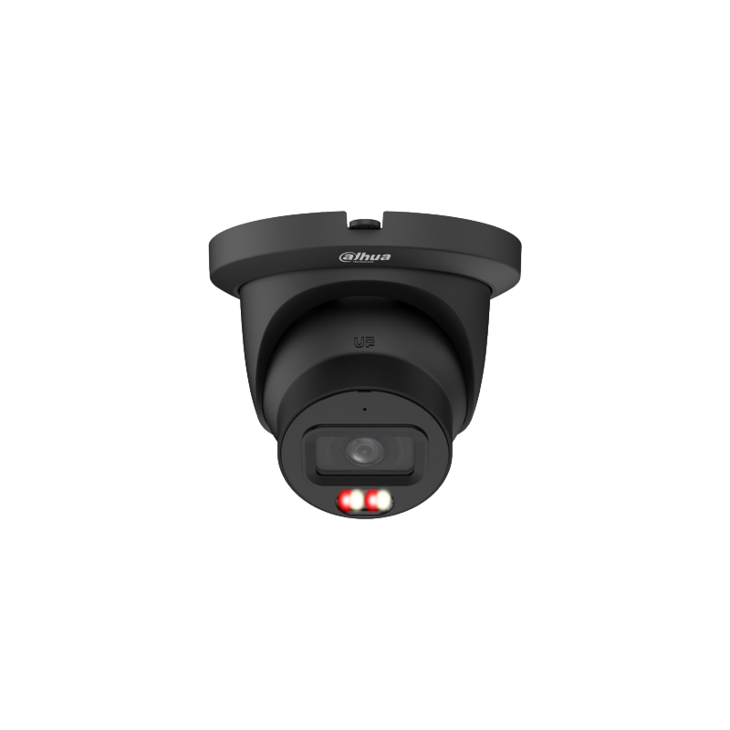Domo IP Smart Dual Light Dahua WizMind Serie 5 tipo eyeball, 4 megapíxeles a 25 o 30 imágenes por segundo, ICR, iluminación mínima de 0,0007 lux en color, IR y luz blanca de hasta 50 metros, óptica fija de 2,8 mm, WDR real de 140 dB, reducción de ruido 3DNR y funciones de imagen avanzadas. Analítica de inteligencia artificial WizMind con SMD 4.0, AcuPick, protección perimetral, detección facial y conteo de personas. Audio bidireccional, 1 entrada y 1 salida de alarma, ranura MicroSD de hasta 1 TB, grado de protección IP67, resistencia antivandálica IK10 y alimentación PoE+.