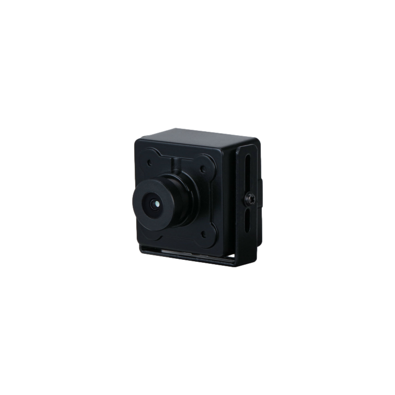 Cámara miniatura Dahua 4 en 1 con tecnología Starlight, resolución de 2 megapíxeles a 25 o 30 imágenes por segundo, óptica fija de 2,8 mm, WDR real de 120 dB y reducción de ruido 3D NR, audio por coaxial con entrada RCA, salida compatible con CVI, CVBS, AHD y TVI, función Defog electrónico y zoom digital 4X, alimentación de 12V CC.