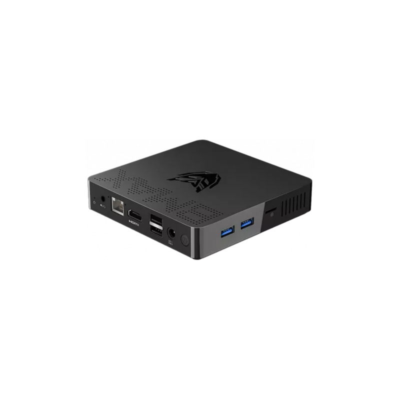 Mini PC BMAX B1 Plus con procesador Intel Celeron N3350 hasta 2.4 GHz, 6 GB RAM LPDDR4, 64 GB eMMC ampliable por M.2 y microSD. Conectividad WiFi AC Dual Band, Bluetooth 4.2, HDMI + VGA, 4 puertos USB y LAN Gigabit. Diseño fanless de 220 g, silencioso y compacto con soporte de montaje. Windows 10 Home preinstalado.