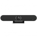 Barra de videoconferencia todo en uno, cámara 4K, ángulo de visión 120 grados, micrófonos y altavoz integrados, Plug & Play.