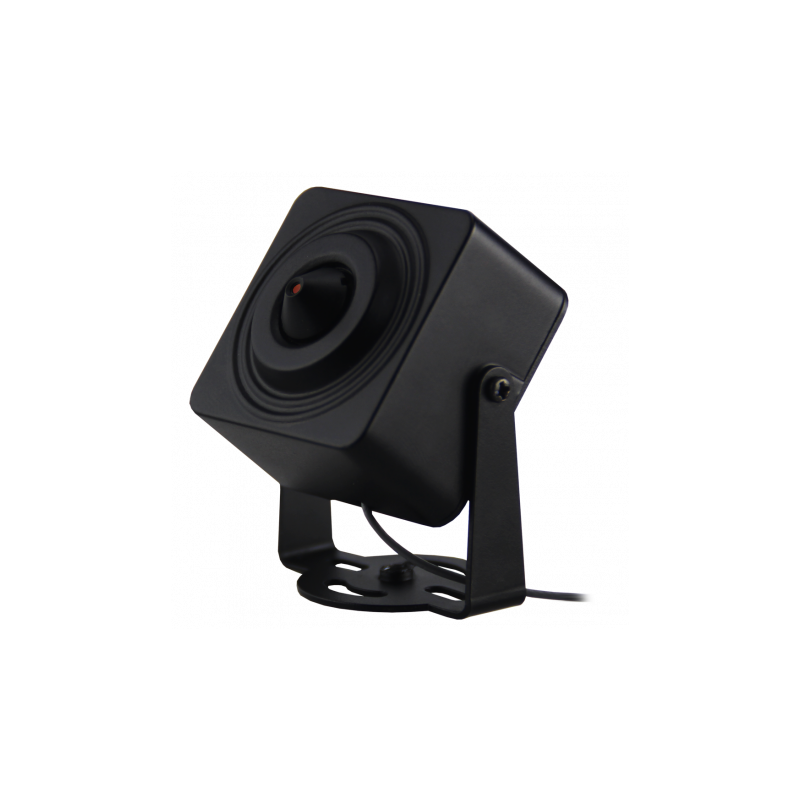 Mini cámara IP pinhole de 4 MP, lente 3.7 mm, WDR 120 dB, micrófono integrado, inteligencia artificial, PoE, compatible ONVIF.