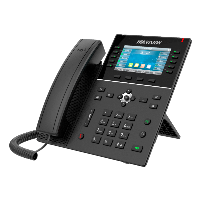 Teléfono SIP con pantalla de 4,3 pulgadas, resolución de 480 x 272, 20 líneas SIP, 43 teclas físicas, 2 interfaces Ethernet de 10/100/1000 Mbps, PoE estándar, alimentación