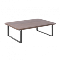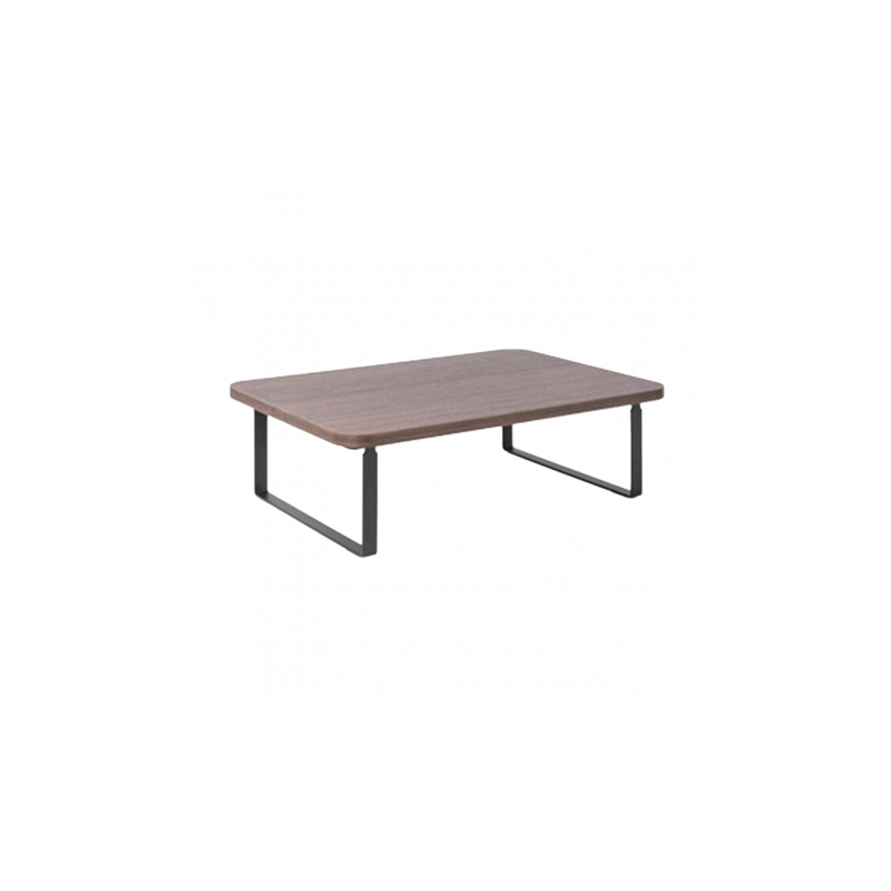 Elevador para monitor, altura 122 mm, soporta hasta 20 kg, material plástico, acero y tablero, color negro mate y madera.