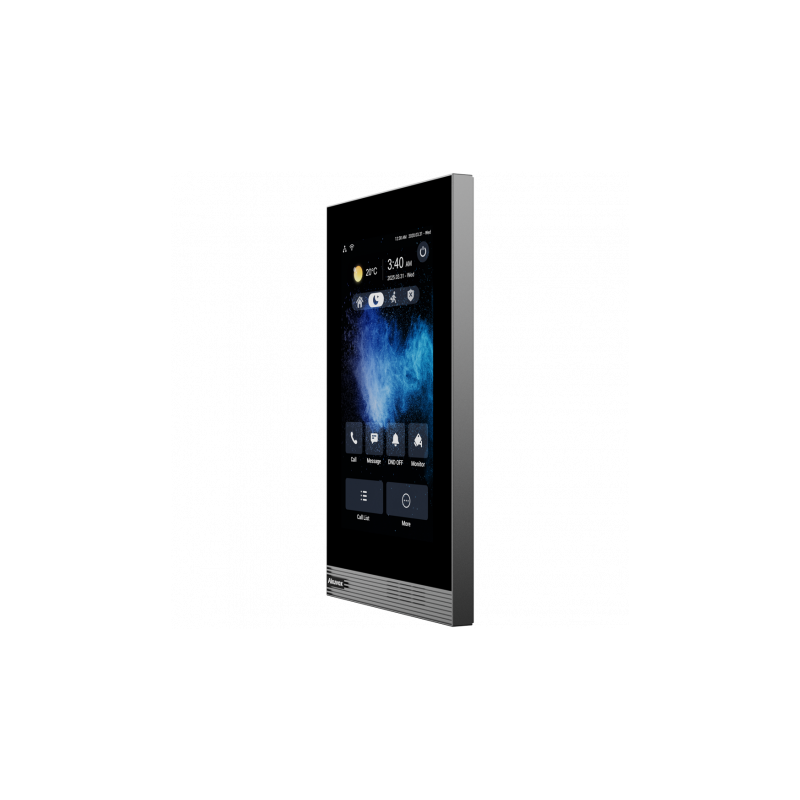 Monitor Linux para videoportero, pantalla vertical TFT de 7 pulgadas, audio bidireccional con tecnología Crystal Clear. Interfaz de usuario Easy UI, comunicación y alimentación por TCP/IP y PoE, compatible con protocolo SIP estándar. Permite el mantenimiento remoto y la gestión a través de Cloud, conexión entre monitores y placas mediante nube, integración con cámaras CCTV vía ONVIF y visualización directa desde el dispositivo. Incluye entrada de timbre, 8 entradas de alarma, una salida de relé y soporte para varios métodos de acceso y notificaciones a través de la aplicación SmartPlus.