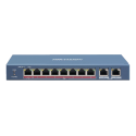 Switch PoE sin gestión, 8 puertos de cobre 10/100 Mbps, 2 puertos 10/100/1000 Mbps, 8 puertos PoE+ extendido de 250 metros, PoE hasta 110 W, alimentación de 48