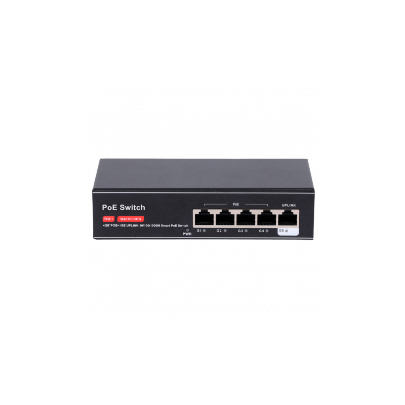 Switch PoE Gigabit no gestionado con 4 puertos PoE y 1 puerto uplink RJ45, todos compatibles con velocidades de hasta 1000 Mbps. Aporta hasta 60 W totales de potencia PoE y un ancho de banda de 10 Gbps. Diseñado bajo el estándar PoE IEEE 802.3 af/at, integra fuente de alimentación de 65 W, proporcionando hasta 30 W por puerto para cámaras IP, puntos de acceso WiFi y teléfonos VoIP, favoreciendo la infraestructura a través de una única unidad. Plug and play, detecta automáticamente dispositivos PoE, gestiona negociación de velocidad y MDI/MDIX y dispone de función watchdog PoE para restablecer alimentación en caso de fallo de comunicación. Su diseño compacto admite uso en escritorio o montaje en pared, adaptándose a pequeñas oficinas, comercios, sistemas de videovigilancia o cualquier entorno que requiera ampliar conectividad PoE de manera práctica y fiable.