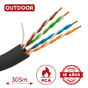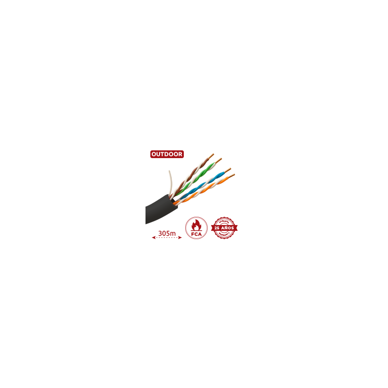 Bobina de cable UTP Categoría 5E para exterior, 305 metros, conductor 24AWG rígido CCA, 4 pares trenzados, cubierta especial para exterior, color negro, diámetro 5.5 mm