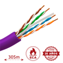 Bobina de cable UTP categoría 6, 305 metros, conductor OFC BC flexible, aislamiento HDPE, cubierta exterior PVC, color morado, cumple con CPR Eca.