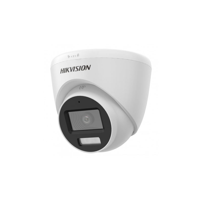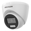 Cámara Turret Hikvision 2K, lente 2.8 mm, IR hasta 40 metros, luz blanca 20 metros, audio coaxial, micrófono, IP67, metálica.