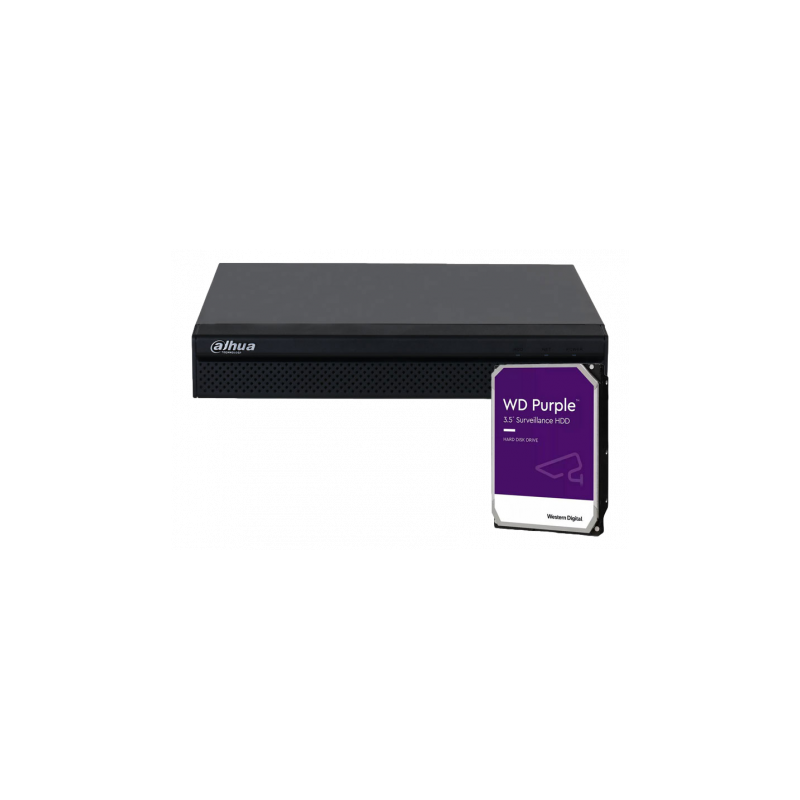 NVR IP Dahua de 8 canales, compresión Smart H.265+, ancho de banda de entrada de 80 Mbps y de salida de 60 Mbps, salidas simultáneas HDMI en 4K y VGA en 1080P, soporte para cámaras inteligentes y SMD Plus en 4 canales, incluye un disco duro de 2TB diseñado para videovigilancia, puerto de red RJ45 Fast Ethernet, dos puertos USB 2.0, alimentación de 12V CC.