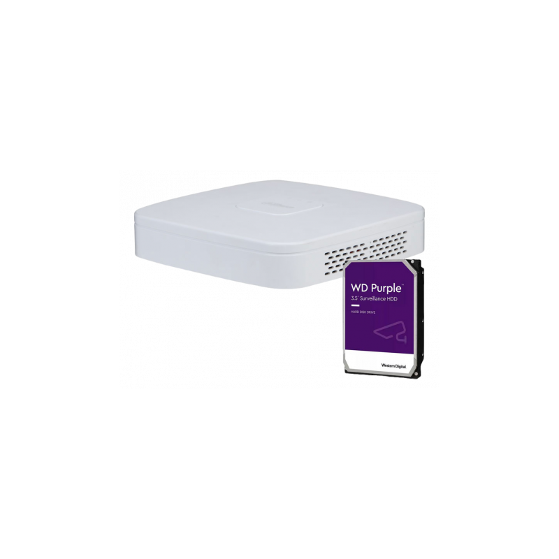 NVR IP Dahua de 8 canales, grabación en formato Smart H265+, ancho de banda de entrada de 80 Mbps, grabación de 80 Mbps y salida de 60 Mbps, salidas de vídeo simultáneas HDMI con resolución 4K y VGA en 1080P, permite la conexión de cámaras inteligentes y gestión avanzada, SMD Plus en 4 canales, incluye un disco duro de 2TB optimizado para videovigilancia, integra un puerto RJ45 Fast Ethernet y dos conexiones USB 2.0, incorpora 4 puertos PoE+ con salida total de 36W a 53V CC.