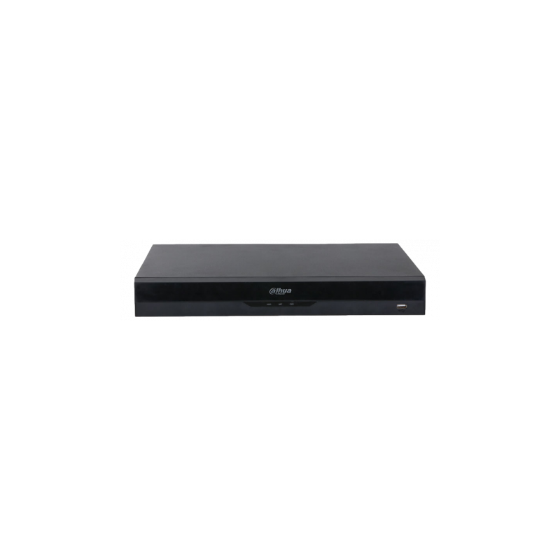 NVR Dahua WizSense de 16 canales, salida HDMI 8K, resolución hasta 32MP. Inteligencia artificial desde el grabador y la cámara, incluye detección facial, SMD Plus, metadatos, LPR, conteo, EPI y otras funciones. Gestiona hasta 448 Mbps de ancho de banda. Soporta hasta 2 discos duros internos. Compatible con ONVIF, eSATA y navegadores web principales.