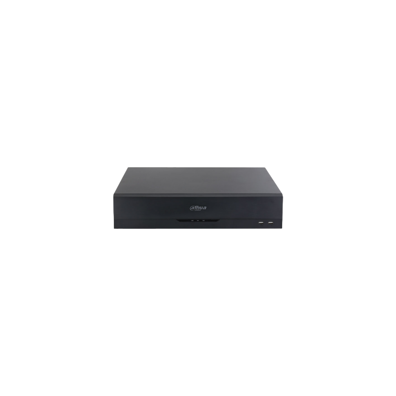 NVR Dahua WizSense con capacidad para 16 canales, 16 puertos PoE, resolución de hasta 32MP, funciones de inteligencia artificial avanzada como análisis facial, metadatos, lectura de matrículas, SMD Plus, conteo de personas, mapa de calor y detección de EPI, procesamiento por grabador y cámara, salidas de vídeo hasta 8K, admite conexión de 8 discos duros y tecnología RAID, incluye tecnología ePoE.