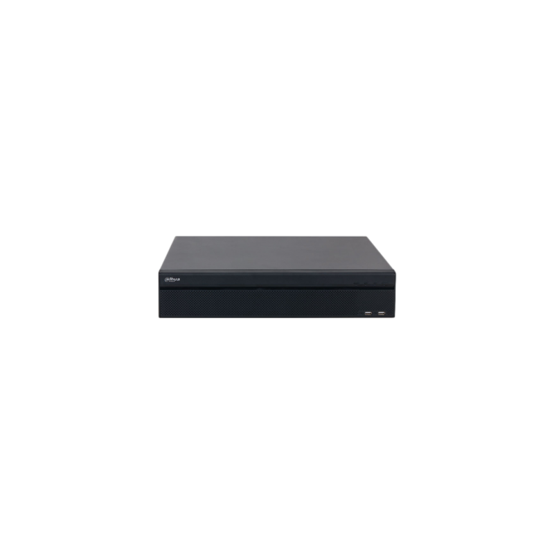 NVR Dahua WizSense de 32 canales, admite resoluciones de hasta 32MP, inteligencia artificial avanzada tanto desde grabador como cámara con funciones como análisis facial, metadatos, ANPR, SMD Plus, conteo de personas, mapa de calor y detección de EPI, salidas hasta 8K, redundancia con doble puerto RJ-45 y soporte para 8 discos duros con configuración RAID, rendimiento de hasta 448 Mbps.
