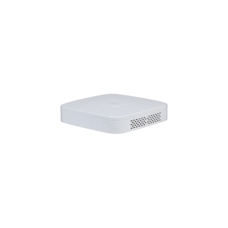 NVR IP Dahua de 4 canales, resolución de hasta 4K u 8 megapíxeles, compresión Smart H.265+, Smart H.264+, H.265 y H.264, ancho de banda total de 80 a 60 Mbps, salidas de vídeo simultáneas HDMI 4K y VGA 1080P, audio bidireccional mediante entrada y salida RCA, compatible con funciones avanzadas de protección perimetral, SMD Plus y mapa de calor, admite grabación, búsqueda inteligente mediante metadatos y tecnología ANR para continuidad en caso de fallo de red, almacenamiento interno para un disco duro SATA de hasta 10 TB, 4 puertos PoE, acceso remoto desde navegador web y aplicaciones móviles, instalación de sobremesa.