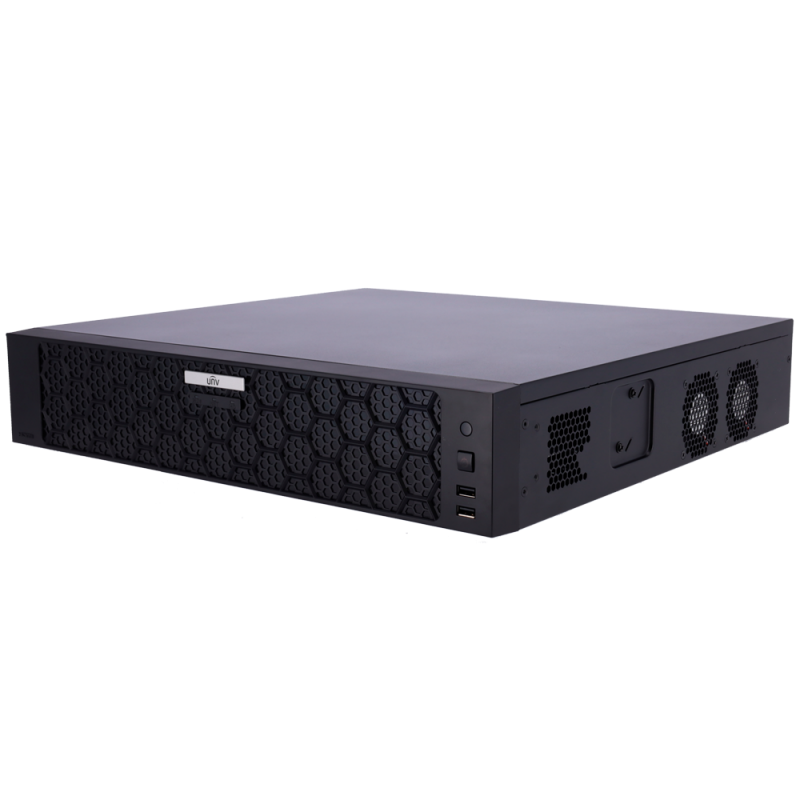 Grabador NVR Uniview gama Prime, 16 canales IP, compatibilidad con cámaras UNIVIEW y ONVIF, aplica analíticas aunque la cámara no las tenga, SIP y UMD por NVR hasta 16 canales, SmartSearch y AcuSearch, capacidad de decodificación avanzada con perfiles Smart Off y Smart On, ancho de banda de entrada y salida hasta 384 Mbps con Smart Off y 200 Mbps con Smart On, 9 HDD internos de hasta 16 TB cada uno, RAID 0 1 5, salidas de vídeo 2 HDMI 4K y 2 VGA, audio bidireccional, 16 entradas y 10 salidas de alarma, doble RJ45 10M 100M 1000M, puertos USB 3.0 y USB 2.0, alimentación AC de 100 a 240 V.