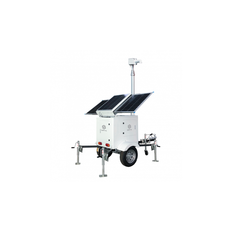 Trailer autónomo para CCTV, panel solar de 3x120W, batería LiFePo de 2520Wh, mástil telescópico de hasta 6 metros, protección IP65