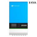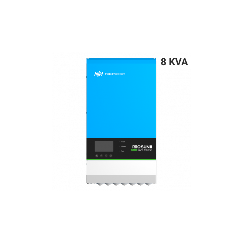 Inversor solar monofásico todo en uno TBB, potencia de 8000 W, dos entradas MPPT, integra inversor, cargador y regulador solar, compatible con batería, módulo WiFi para comunicación. Diseño versátil para sistemas conectados a red con o sin batería, sistemas aislados y ampliaciones mediante acoplamiento AC. Permite operación como backup, configuración en paralelo o en trifásico para mayores demandas de potencia. Incorporación nativa de WiFi, gestión y monitorización mediante aplicación y portal web, posibilidad de ampliar funciones con accesorios específicos.
