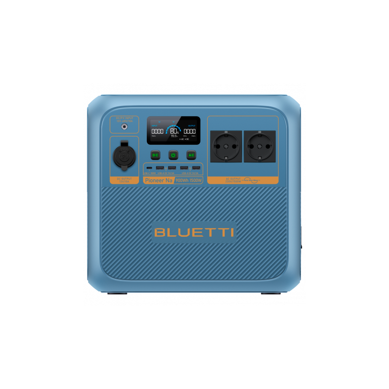 Estación de energía portátil de sodio con capacidad de 900Wh, salida máxima de 1500W, múltiples opciones de carga y salidas, autonomía de 4000 ciclos, adecuada como sistema de respaldo gracias a su función UPS. Admite aplicaciones en climas fríos y zonas de montaña, manejando rangos térmicos amplios. Diseño portátil con alta densidad energética, recarga rápida en 1 hora con modo Turbo o mediante paneles solares compatibles Bluetti. Dispone de variedad de salidas: corriente alterna, DC, USB y carga inalámbrica. Incluye pantalla LCD para monitorización y se controla también desde una aplicación.