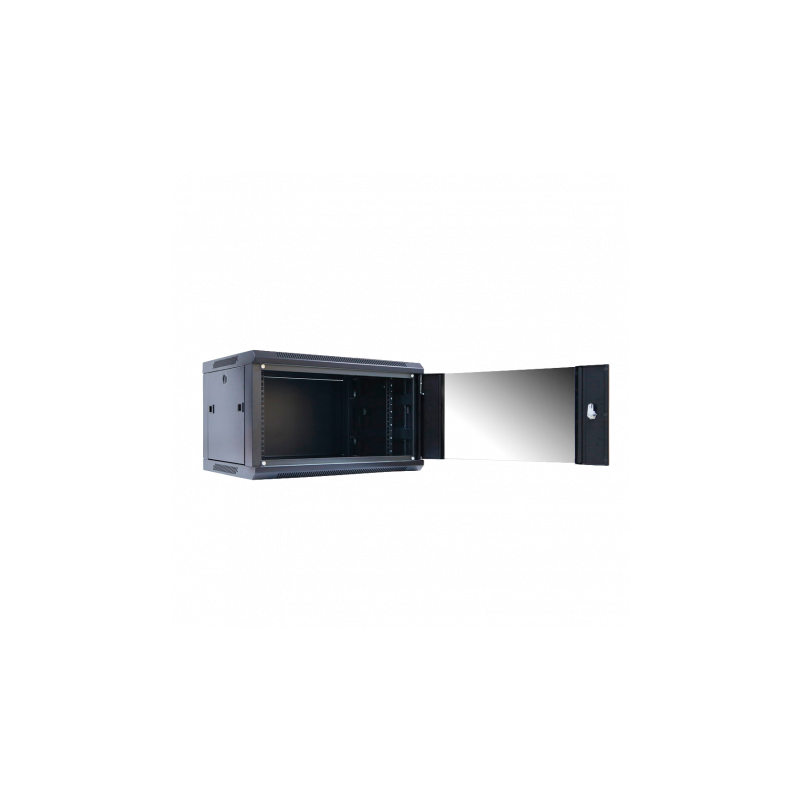 Armario mural de 15U para instalación estándar de 19 pulgadas, soporta carga estática máxima de hasta 100 kg, puerta de cristal templado con apertura superior a 180 grados, paneles laterales desmontables para un acceso sencillo, entradas de cables situadas en la parte superior e inferior, preparado para la instalación de ventilador de 120 mm y grado de protección IP20. Fabricado en acero laminado en frío, idóneo para albergar equipos de red, telecomunicaciones y servidores requiriendo máxima resistencia y facilidad de mantenimiento.