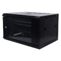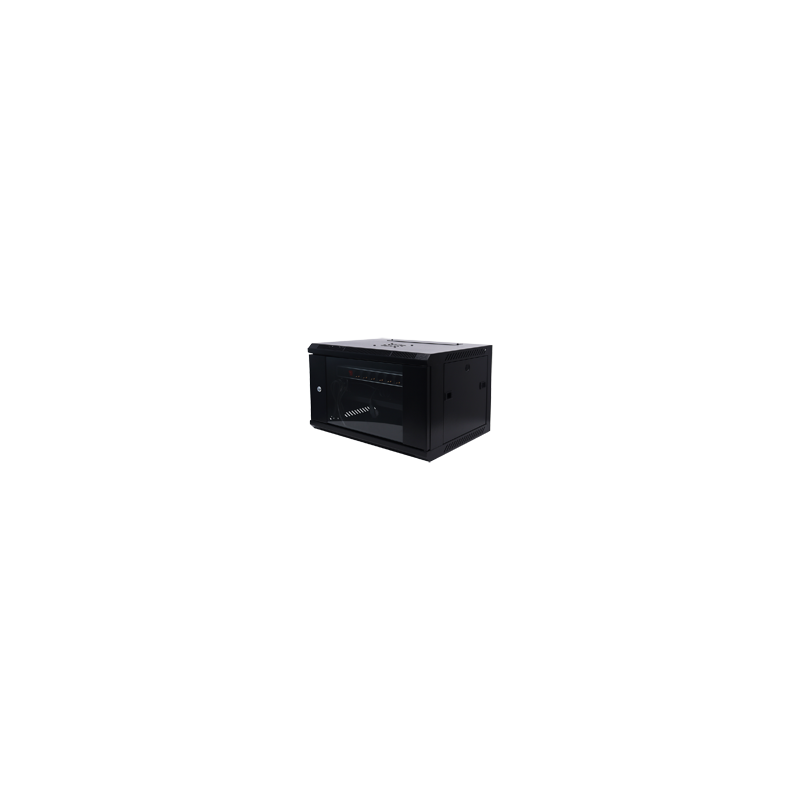 Gabinete de 6U para rack de 19 pulgadas, formato desmontado Flat pack para facilitar la logística y el acceso previo al ensamblaje, estructura en acero laminado en frío SPCC, instalación en suelo o pared, refrigeración activa con ventilador incorporado, PDU europeo de 1U con 6 tomas, carga máxima 60 kg, adecuado para terminales de cableado, servidores compactos y equipos de telecomunicaciones