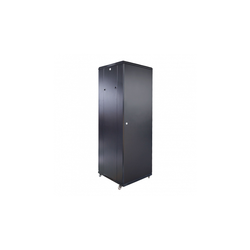 Armario rack para suelo con capacidad de 32U para estándar de 19 pulgadas, soporta hasta 800 kg de carga estática sobre pies y ruedas, incluye gestión de cableado superior e inferior, se entrega ensamblado. El modelo RACK-32U-8D está fabricado en acero laminado en frío SPCC con acabado fosfatado y pintura en polvo negra de alta resistencia, perfiles de montaje en forma de S de 2,0 mm con ajuste libre, paneles laterales removibles con cierre rápido, base y techo con entradas de cable para gestión organizada. La estructura desmontable permite embalaje plano y simplifica la instalación en lugares de difícil acceso, manteniendo la integridad estructural y estabilidad. Cumple con certificaciones CE y RoHS, diseñado para despliegue profesional de infraestructura de red.