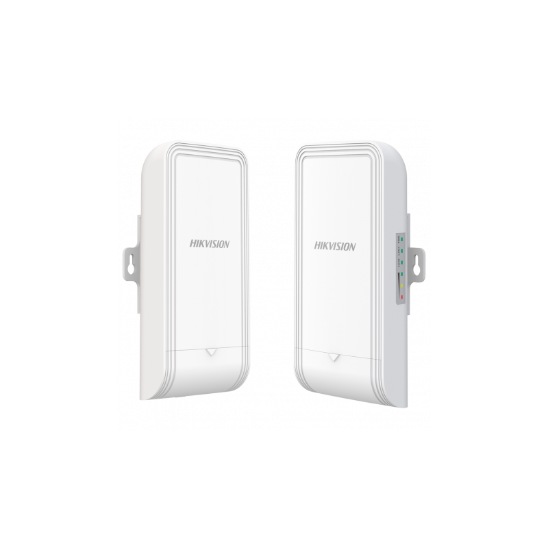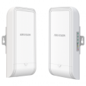 Kit de enlace inalámbrico exterior Hikvision. Hasta 3 000 metros de transmisión en línea de vista, frecuencia de 5 GHz, basado en IEEE 802.11a/n/ac, adecuado para aplicaciones punto a punto o punto a multipunto. Incluye dos unidades emparejadas con antena integrada de 8 dBi 2×2 MIMO, velocidad de aire de hasta 867 Mbps, protección IP55 para uso en exteriores, alimentación PoE para instalación sin fuentes locales de energía, soporta funcionamiento plug-and-play, gestión web, iVMS-4200 y HCP, opciones de seguridad WPA2-PSK y selección de canal. Apto para entornos donde el tendido de cable no es posible, enlaces de videovigilancia o extensión de red exterior.