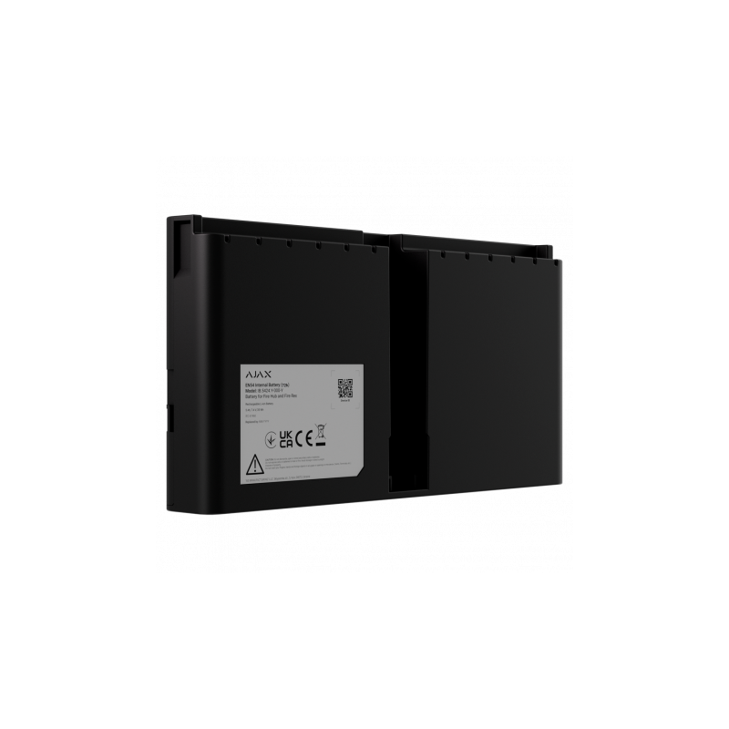 Batería recargable de ion de litio diseñada para los modelos AJ-EN54-FIREHUB y AJ-EN54-FIREREX, funcionamiento autónomo hasta 72 horas, color negro, compatible con sistemas Ajax que requieren respaldo energético prolongado en aplicaciones de seguridad contra incendios.