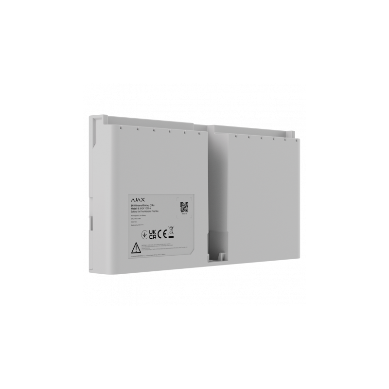 Batería recargable de ion de litio diseñada para los modelos AJ-EN54-FIREHUB y AJ-EN54-FIREREX, proporciona suministro energético fiable durante 24 horas, color blanco. Compatible con sistemas Ajax que requieren autonomía prolongada y rendimiento estable.