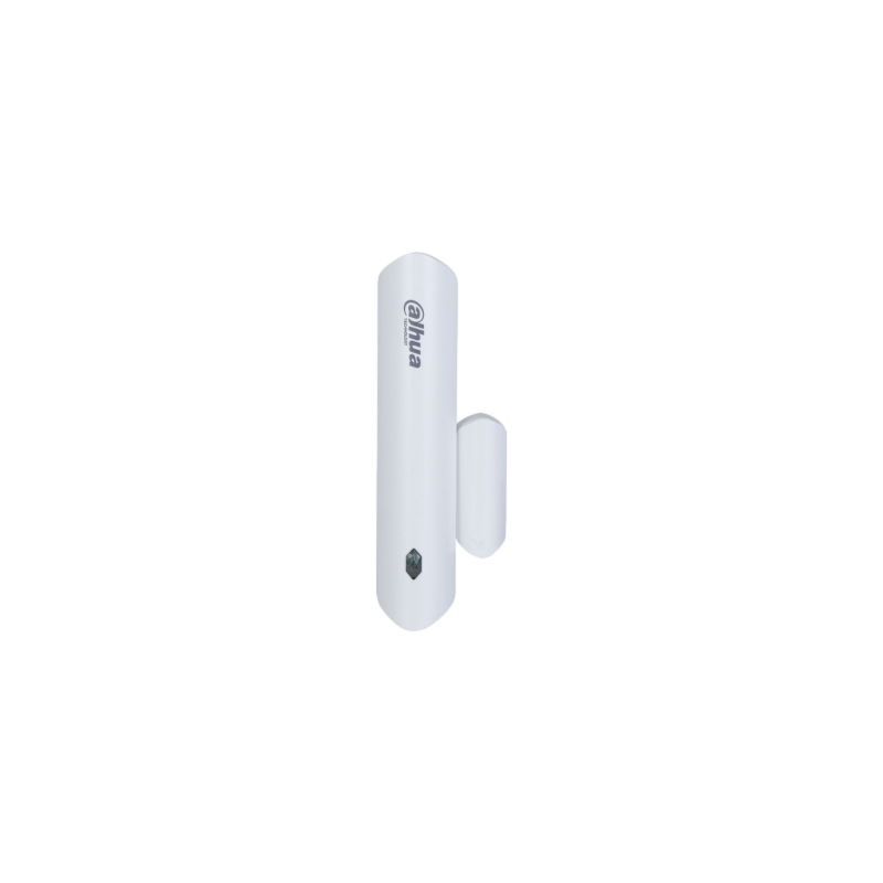 Detector magnético vía radio Plus Dahua, detección de apertura, inclinación y vibración, acelerómetro triaxial, reed switch, sensor de temperatura con alarma por sobrecalentamiento, comunicación bidireccional cifrada AES128 a 868 MHz, entrada cableada NA, NC, pulso, actualización cloud, alimentación por pila CR123A.
