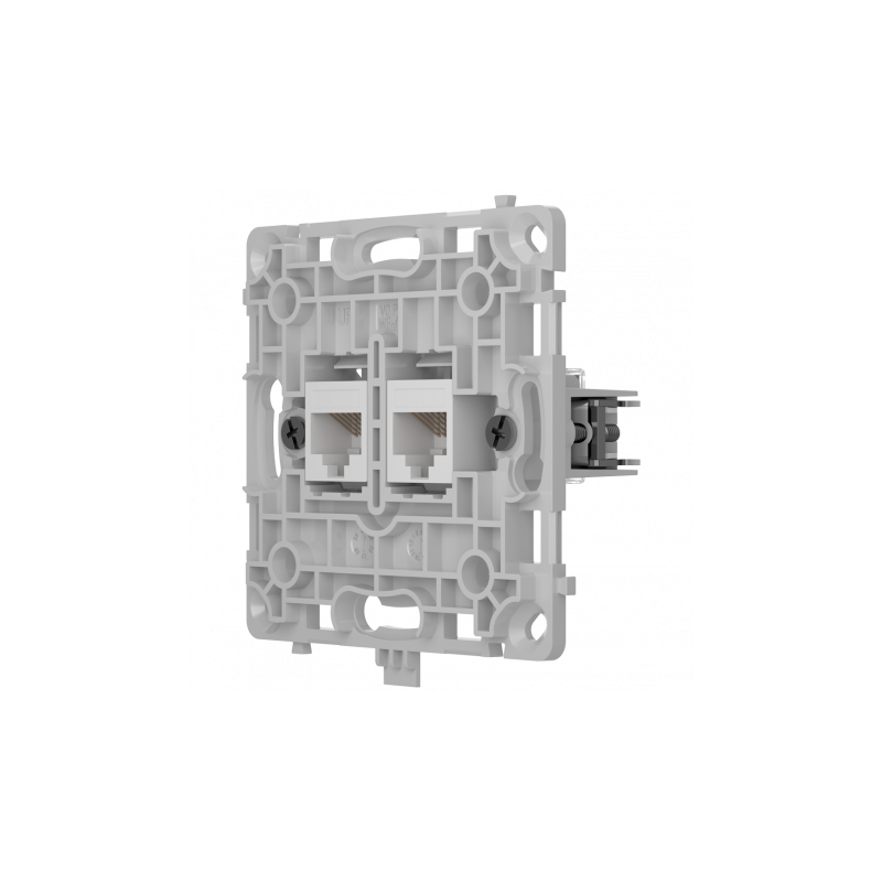 Enchufe Ethernet con dos puertos, compatible con cables CAT.6 y CAT.5e, transmisión de datos a alta velocidad, requiere tapa frontal SOLOCOVER-LAN, SIDECOVER-LAN o CENTERCOVER-LAN, color blanco. Permite la transferencia de datos de hasta 1 Gbit/s y está indicado para aplicaciones que demandan gran ancho de banda como vídeo 4K. Su instalación es sencilla, encaja en caja de montaje estándar y mantiene el cableado existente. La base incorpora toda la electrónica necesaria y puede combinarse en diseños horizontales o verticales mediante marcos, con opción de diferentes tapas en ocho colores. Compatible en estética con enchufes inteligentes Ajax, adapta espacios de forma discreta y funcional.