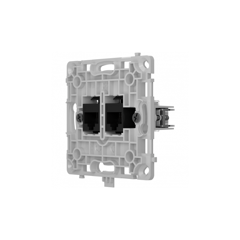 Enchufe Ethernet de dos puertos, para cables CAT.6 y CAT.5e, datos a 1 Gbit/s hasta 100 metros, uso interior, protección IP20.