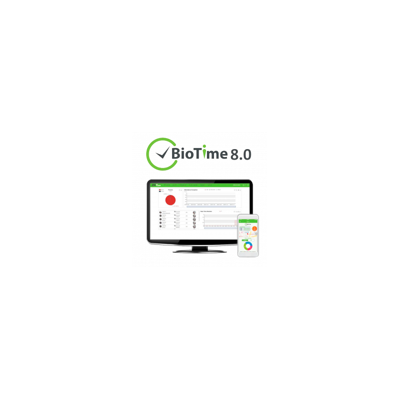 Licencia app control de presencia y acceso, capacidad 60 usuarios, pago único, precio paquete completo, multidioma, funciones avanzadas, multitud de reportes de horarios, requiere ZK-BIOTIME8-x.