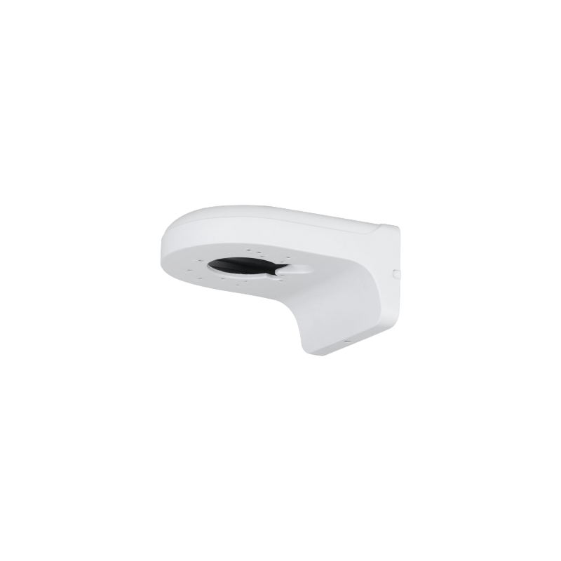 Soporte de pared diseñado para cámaras Dahua, fabricado en aleación de aluminio y acero galvanizado (SGCC), instalación mural, capacidad de carga de 1 kg, acabado en color blanco, apto para entornos de -40 °C a +60 °C, protección anticorrosión básica.