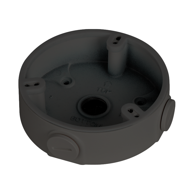 Caja de conexiones para cámaras domo, fabricada en aleación de aluminio, dimensiones de 36 mm de altura y 117.8 mm de diámetro base, peso de 180 gramos, apta Caja de conexiones para cámaras domo,...