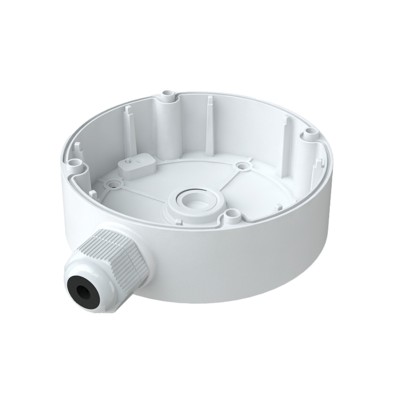 Caja de conexiones Safire Smart para cámaras domo, apto para uso exterior con grado de protección IP66, instalación en techo o pared, diámetro de la base de 117.9 mm, pasador de cables.