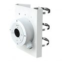 Soporte de techo Safire Smart para cámaras, fabricado en aleación de aluminio, adecuado para uso en exterior e interior. Con medidas de 215 alto, 164,7 ancho, 54 fondo milímetros y diámetro de base de 117,9 milímetros, ofrece una instalación resistente para cámaras domo y bullet. Su acabado en color blanco asegura una integración discreta y profesional en entornos de seguridad, permitiendo un montaje robusto y compatible con diferentes tipos de superficie.