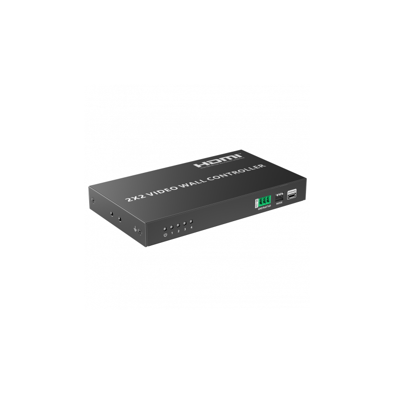Electrónica videowall 2x2, permite 1 entrada y 4 salidas, resolución 1080p a 60 Hz, control RS-232, alimentación DC 5 V.