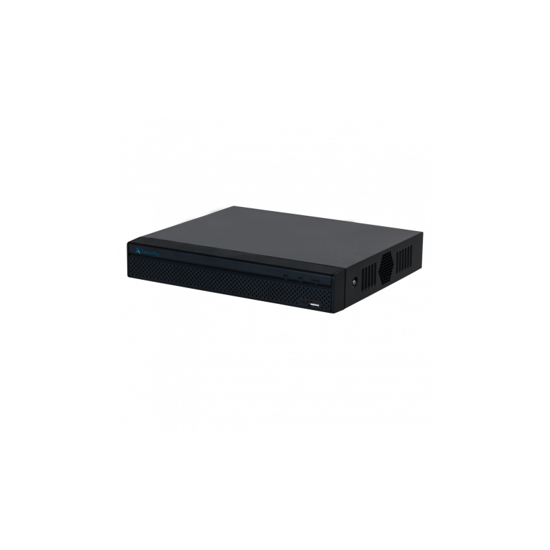 Grabador NVR IP X-Security, 4 canales IP, 4 PoE, resolución hasta 12 Mpx, ancho de banda 80 Mbps, salida HDMI y VGA.