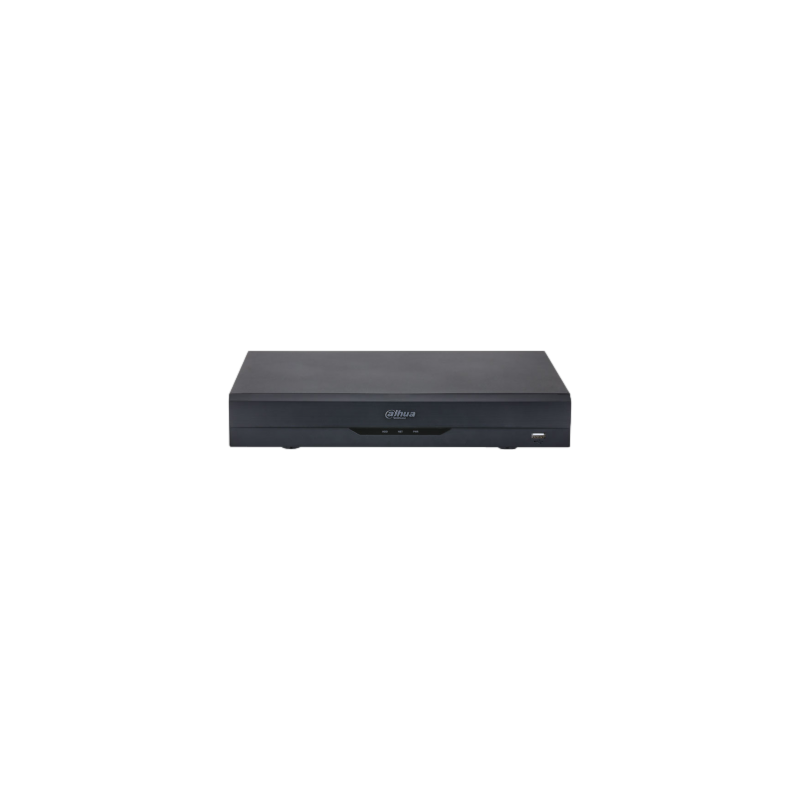 Soporta 4 cámaras analógicas y 8 IP simultáneas, grabando hasta 4K; inteligencia artificial, audio bidireccional y salida HDMI 4K.