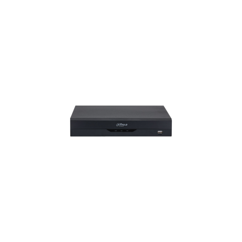 Soporta hasta 16 canales BNC y 24 IP, grabación en 5MP@25ips, IA perimetral, reconocimiento facial y SMD Plus integrados.